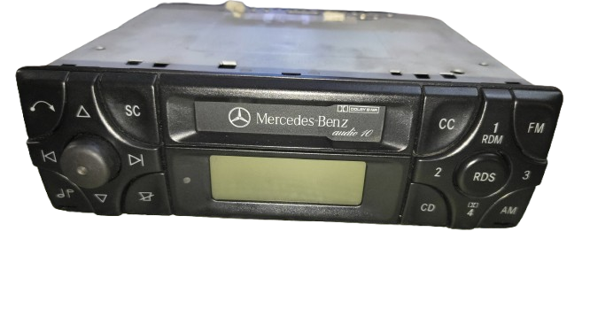 Jedná se o originální rádio do vozů Mercedes-Benz o velikosti 1 din. Rádio je na MC s připojením changeru na CD přes optický kabel.