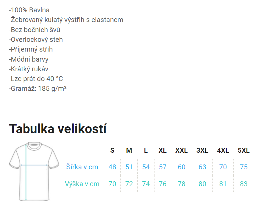 • Materiál: 100% Bavlna velice příjemný materiál i střih